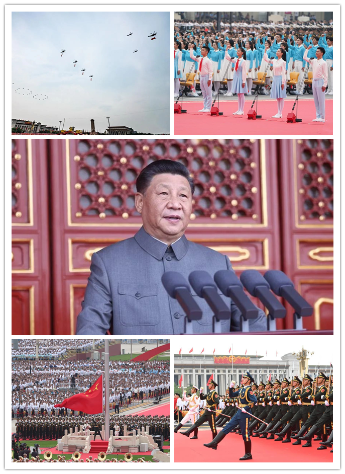 8時(shí)整,大會(huì)開(kāi)始。戰(zhàn)鷹飛過(guò)天安門(mén)廣場(chǎng),最美的祝福送給黨!國(guó)旗護(hù)衛(wèi)隊(duì)器宇軒昂、步伐堅(jiān)定,從人民英雄紀(jì)念碑到國(guó)旗桿220米的距離,由齊步、正步、齊步各100步完成;這條路不長(zhǎng)、剛好走了100步,這條路很長(zhǎng)、足足走了100年!會(huì)場(chǎng)內(nèi)外萬(wàn)千中華兒女注目著五星紅旗冉冉升起,莊嚴(yán)的外表難掩內(nèi)心無(wú)比的激動(dòng)。緊接著,共青團(tuán)員和少先隊(duì)員代表們集體致獻(xiàn)詞,滿懷深情表達(dá)了對(duì)黨百年華誕的真摯祝福。接下來(lái),大會(huì)進(jìn)行最為重要的議程,習(xí)近平總書(shū)記發(fā)表重要講話!當(dāng)總書(shū)記講到“中國(guó)人民也絕不允許任何外來(lái)勢(shì)力欺負(fù)、壓迫、奴役我們,誰(shuí)妄想這樣干必將在14億多中國(guó)人民用血肉筑成的鋼鐵長(zhǎng)城面前碰的頭破血流”時(shí),集團(tuán)全體黨員心潮澎湃,會(huì)議室內(nèi)響起熱烈掌聲!