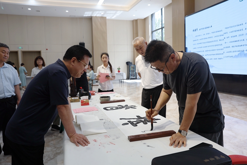 晉中市書法家協(xié)會(huì)主席張建民先生、副主席籍宏偉先生攜筆墨而來(lái),傾情揮毫。