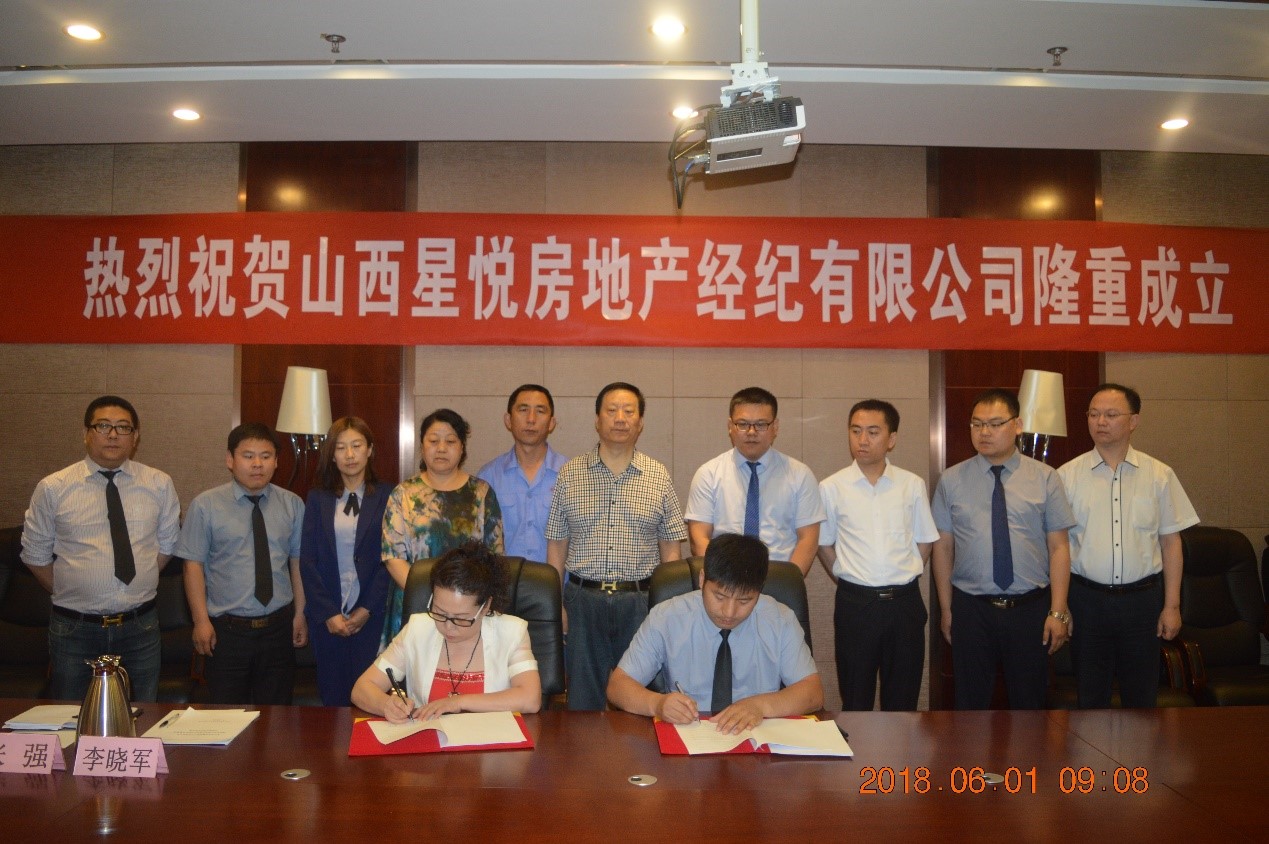 2018年6月1日上午9時(shí),“山西星悅房地產(chǎn)經(jīng)紀(jì)有限公司成立大會(huì)暨簽約儀式”在星雅名都酒店4樓會(huì)議廳隆重舉行。集團(tuán)董事長(zhǎng)總裁郭秀忠、副總裁王文萍、郭雅維、董事長(zhǎng)助理沈習(xí)寧、經(jīng)...